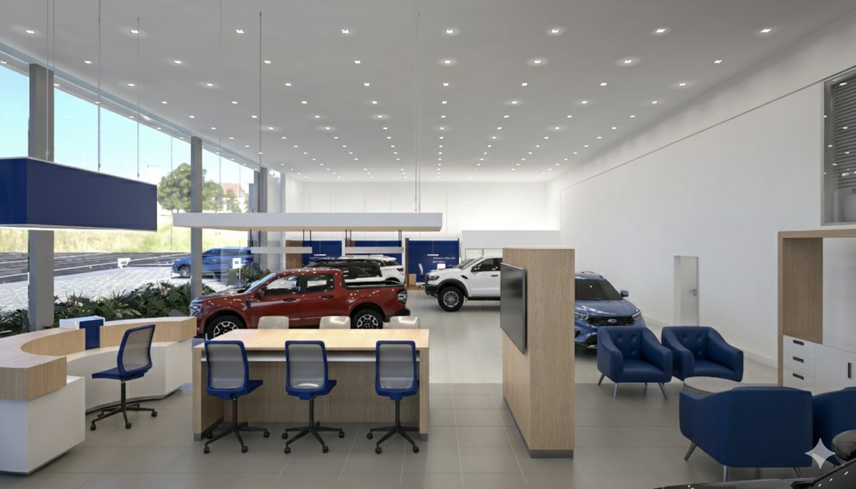 Projeto desenvolvido do zero para a nova loja Ford em Boa Vista – Roraima, implantada em um lote de 2.748,87m² e com 1.900m² de área construída. A proposta une funcionalidade, identidade de marca e eficiência operacional, criando um espaço amplo, moderno e preparado para oferecer uma experiência completa ao cliente. Cada ambiente foi planejado para otimizar fluxos, valorizar a exposição dos veículos e garantir conforto, tecnologia e padrão de qualidade Ford em todos os detalhes.